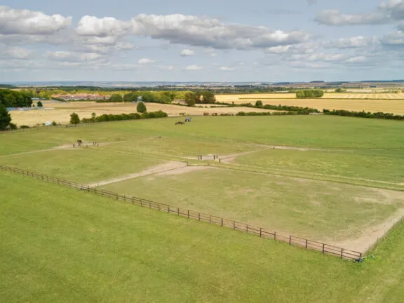 Our fencing teams installed six large paddocks using a mix of post-and-rail and Hotcote electric fencing, complete with water supplies and troughs. Despite the undulating ground, this phase was completed in under three weeks, allowing horses to enjoy turnout almost immediately after the move.