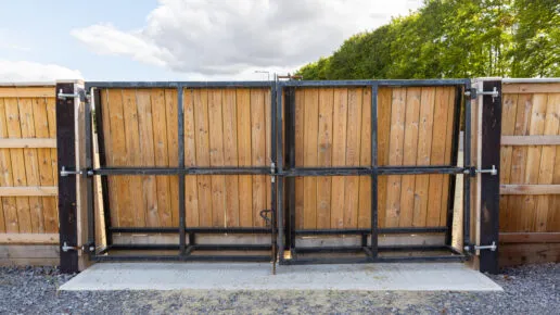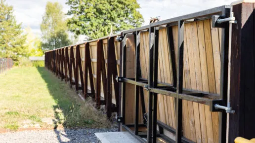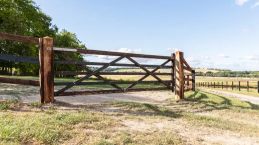 Custom polo board fencing and bespoke gate, safely operable on foot or mounted.